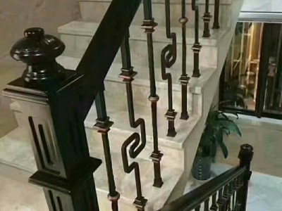 樓尚公館別墅弧型梯 鐵藝柱子欄桿樓梯 實木原木扶手簡約旋轉(zhuǎn)樓梯